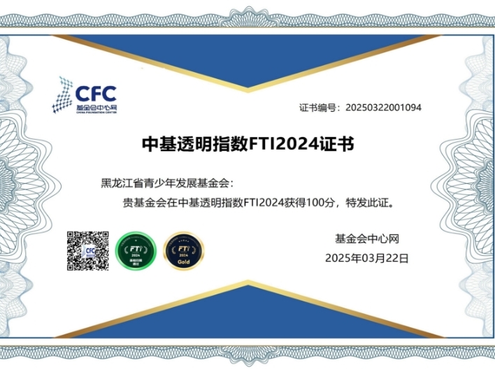 黑龍江省青少年發(fā)展基金會(huì)再獲“中基透明指數(shù)FTI2024”滿分