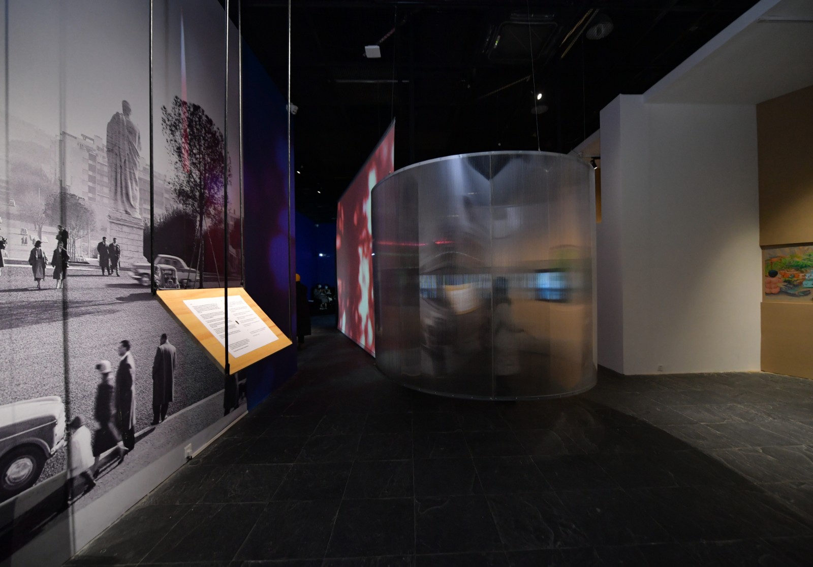 空間與空間的交疊、空間中的空間以作品圖像、檔案重建與場景搭建等形式,散落于展覽的各個角落之中。陳淑瑜在開幕式的視頻致辭中提到:“展覽是關于藝術作品看不見的本質,是我們用藝術作品可見的實體部分去建構展覽的空間,去容納內心不可見的部分。對我來說,這是展覽的意義,也是展覽的開始?!盵8]