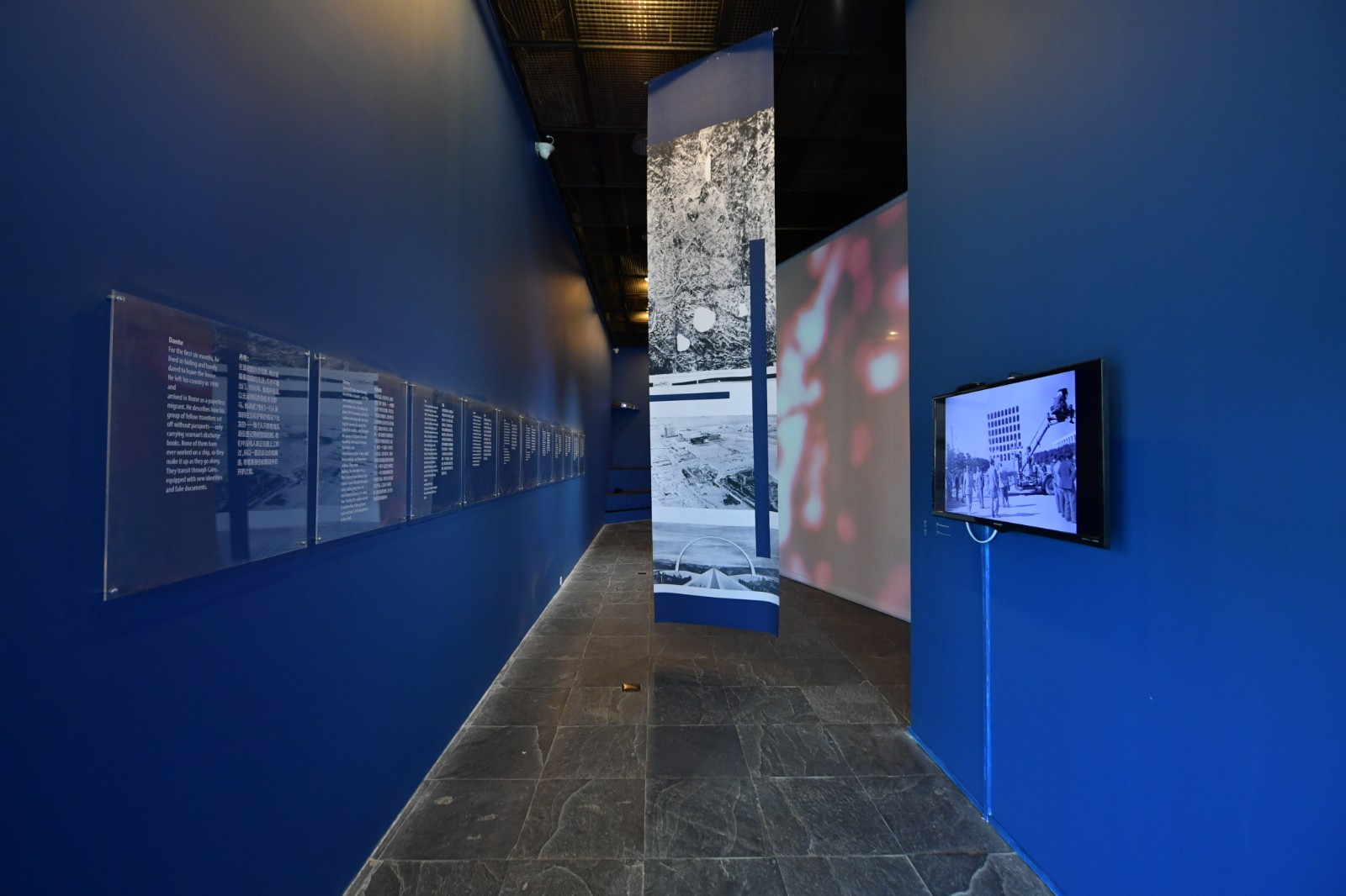 迷宮、暗室與陽臺,觀眾在踱步中反復經歷著公共空間與私人空間的轉場,在這個區(qū)域中,“公共”與“私人”之間的界限如一根極細的、繃緊的弦,揭露私密、分享秘密與集體記憶私人化的交疊營造出了一種強烈的不安定感。