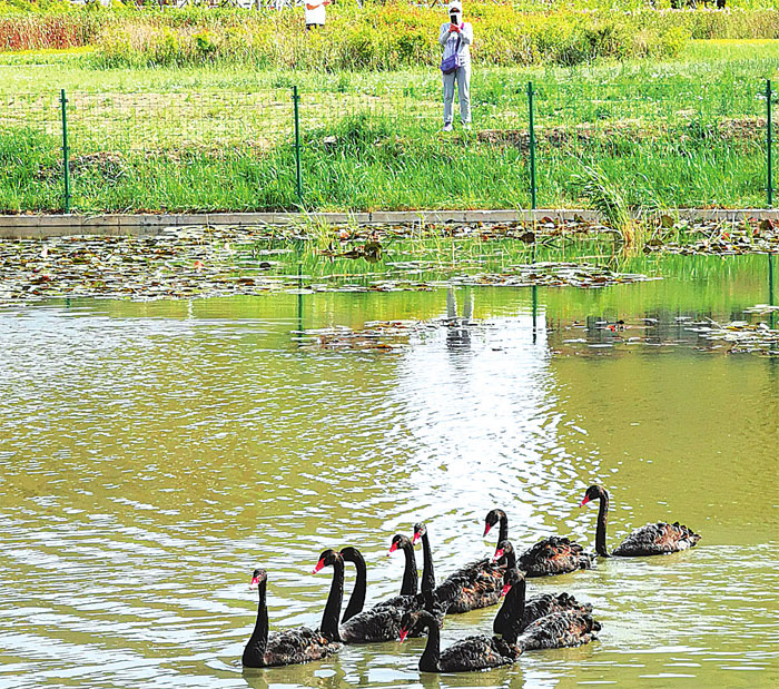 據(jù)大慶市城投公司蘭德湖公園管理處主任孟維凱介紹,這是大慶首次引進黑天鵝,一共有10只,都是澳大利亞品種,5月25日傍晚剛放養(yǎng)到湖里。下一步,蘭德湖公園將陸續(xù)建設(shè)供天鵝棲息的小屋,并投入觀光游艇、腳踏船、觀光車、游樂設(shè)施等,為市民打造新的旅游打卡地。