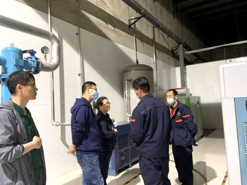 檢查組在黑龍江升華醫(yī)療器械有限公司空壓機(jī)室進(jìn)行檢查