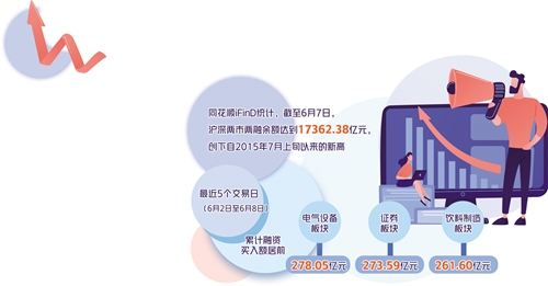 據(jù)同花順iFinD統(tǒng)計,截至6月7日,滬深兩市兩融余額達(dá)到17362.38億元,創(chuàng)下自2015年7月上旬以來的新高;截至6月8日,融資余額為15857.35億元,同樣創(chuàng)下2015年7月上旬以來的新高。