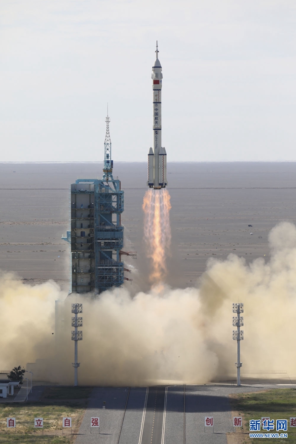 2021年6月17日9時22分,搭載神舟十二號載人飛船的長征二號F遙十二運載火箭,在酒泉衛(wèi)星發(fā)射中心準(zhǔn)時點火發(fā)射,約573秒后,神舟十二號載人飛船與火箭成功分離,進(jìn)入預(yù)定軌道,順利將聶海勝、劉伯明、湯洪波3名航天員送入太空,飛行乘組狀態(tài)良好,發(fā)射取得圓滿成功。新華社記者 琚振華 攝