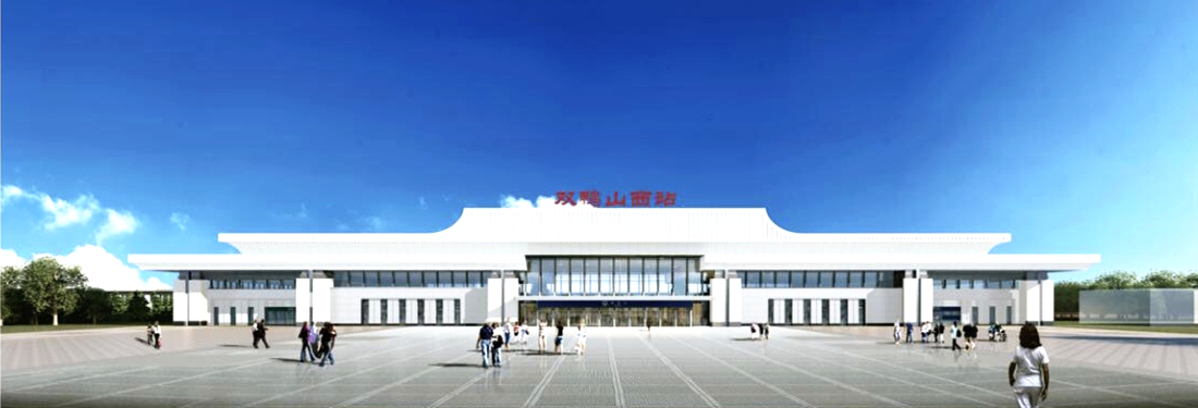雙鴨山西站建筑面積9997.9平方米,設(shè)2條正線,3條到發(fā)線。以“農(nóng)林盛地,昂揚(yáng)煤城,融匯文脈,合于自然”為設(shè)計(jì)理念。建筑形體通過極強(qiáng)的橫向?qū)哟危尸F(xiàn)向中心聚集的趨勢(shì),中心高兩側(cè)低類似于山脈的建筑天際線與橫向線條結(jié)合給人以綿延不絕的感覺,寓意城市文化及歷史如山如水般源遠(yuǎn)流長。建筑整體造型著重體現(xiàn)雙鴨山市的煤城特色和豐富的農(nóng)林資源,其煤炭相關(guān)產(chǎn)業(yè)一直作為城市建設(shè)發(fā)展的重要支柱,建筑主立面采用四根厚重有力的支撐柱,以表現(xiàn)這一理念,同時(shí)深入挖掘并體現(xiàn)雙鴨山市特有的文脈及自然特色。