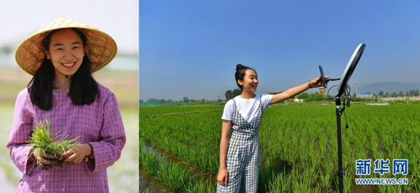 拼版照片:左圖為程玉嬌在太原市晉源區(qū)三家村水稻田里;右圖為程玉嬌在水稻田里進(jìn)行直播(7月9日攝)。今年24歲的程玉嬌2019年留學(xué)回國(guó)后,選擇了返鄉(xiāng)創(chuàng)業(yè)發(fā)展稻魚(yú)菜綜合種養(yǎng)農(nóng)業(yè)。晉源區(qū)三家村出產(chǎn)的大米遠(yuǎn)近聞名,程玉嬌在社交平臺(tái)上開(kāi)通了雙語(yǔ)直播,在科普水稻知識(shí)的同時(shí)拓展銷售渠道,不僅生意做得風(fēng)風(fēng)火火,自己也變成了小有名氣的“網(wǎng)紅”。