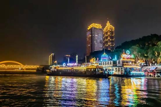 夜幕下的松花江波光滟瀲,江風(fēng)輕撫人清爽,八條經(jīng)過(guò)亮化的游船航行在松花江上,穿行在哈爾濱兩岸的燈火輝煌中,成為夜幕下一道別致的風(fēng)景線。每晚18時(shí)30分至22時(shí),共有4條旅游線路可選擇,途經(jīng)防洪紀(jì)念塔、鐵路江上俱樂(lè)部、松花江鐵路觀光廊道、九站公園、公路大橋、群力音樂(lè)公園等哈爾濱網(wǎng)紅打卡地,是打開(kāi)“夜幕下的哈爾濱”的最好方式之一。