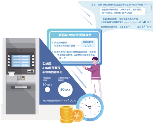 其中,降幅更大的是跨行異地ATM取現(xiàn)手續(xù)費(fèi)。照此實(shí)施后,跨行同城ATM取現(xiàn)手續(xù)費(fèi)降幅10%以上,跨行異地ATM取現(xiàn)手續(xù)費(fèi)降幅80%以上。據(jù)初步測算,預(yù)計(jì)降費(fèi)讓利規(guī)模約為每年40億元。