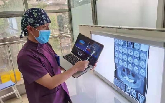 依托于“口腔北斗系統(tǒng)”新技術(shù),劉鑫教授團隊在數(shù)字化口腔種植領(lǐng)域精耕細(xì)作,迄今已圓滿完成了上百例數(shù)字化種植牙手術(shù)。與傳統(tǒng)“自由手”口腔種植技術(shù)相比,數(shù)字化口腔種植手術(shù)更加安全、精準(zhǔn)、微創(chuàng)、高效、舒適。同時,個性化的手術(shù)設(shè)計方案借助數(shù)字化的直觀、立體形式呈現(xiàn)在患者面前,便于醫(yī)患間直接面對面交流,既提升了種植手術(shù)的精確度和成功率,又節(jié)約了手術(shù)時間,減少了手術(shù)創(chuàng)傷,降低了術(shù)后并發(fā)癥。