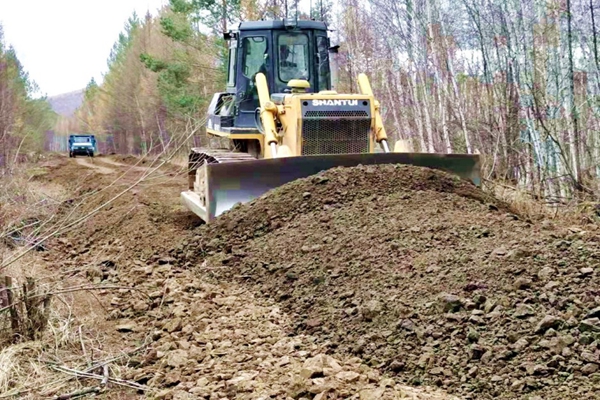 走進(jìn)大興安嶺林業(yè)集團(tuán)公司阿木爾林業(yè)局1—4線,就會看到火熱的勞動場面,只見大型翻斗車輛滿載砂石料蹣跚而過,伴隨著推土機的轟鳴聲,剛卸掉的砂石料很快被鏟平,道路在職工的辛勤工作下,一步步變寬、一步步向前延伸。