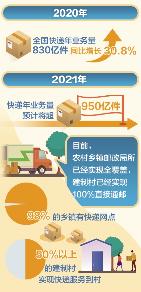 當(dāng)前,快遞年業(yè)務(wù)量以每年遞增100億件的速度持續(xù)高速增長(zhǎng)。據(jù)國家郵政局預(yù)測(cè),2021年快遞年業(yè)務(wù)量將超950億件。