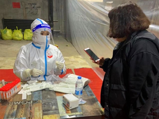10月31日11時,在哈爾濱市新香坊鎮(zhèn)社區(qū)核酸采集現(xiàn)場,黑龍江省醫(yī)院CCU護士畢贏穿著一身白色的防護服正在和同事們熱火朝天地并肩戰(zhàn)斗著,認真地為每一名市民進行著核酸采集工作。原本,此時此刻應(yīng)是畢贏最幸福的時刻:她的婚禮典禮開始時刻定在了2021年10月31日11時18分。一場突如其來的疫情打亂了所有的事先安排,前一天還在布置婚房,準備婚禮酒店需用物品的畢贏,接到了需要馬上奔赴抗疫戰(zhàn)場的通知,婚紗面前,她毅然決然地選擇了防護服,從潔白的婚紗換成了最美的“大白”。但畢贏知道,在人民健康面前,這是她人生中做出的最正確的選擇。