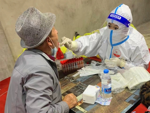 10月30日下午17時,畢贏接到單位領(lǐng)導的通知,準備好支援社區(qū)核酸采集,有可能今晚22點開始,有可能明早8點開始。就這樣,畢贏趕緊通知親戚朋友婚禮暫時取消,馬上要去社區(qū)支援。10月31日早8點,由省醫(yī)院吳丹紅護士長帶隊,畢贏一行40名護士下沉到了新香坊鎮(zhèn)社區(qū)為那里的居民進行核酸采集支援。就這樣,婚紗面前畢贏毅然決然地選擇了防護服,和她的戰(zhàn)友們并肩奔赴社區(qū)支援核酸采集,因為她知道疫情過后的婚禮才會更有意義。
