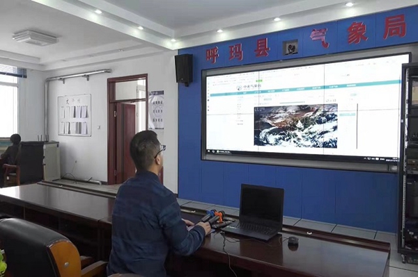 “受冷空氣東移影響,呼瑪縣17日夜間開始出現降雪天氣過程,截止到18日14時,降雪量達到了6.1毫米,平均雪深達到6厘米,過程已達大雪量級,縣氣象臺已發(fā)布道路結冰黃色預警和暴雪藍色預警。雪后風力較大,降溫幅度較大,路面有積雪,提醒駕駛員出行注意行車安全?!焙衄斂h氣象局副局長侯方介紹了整個降雪過程。