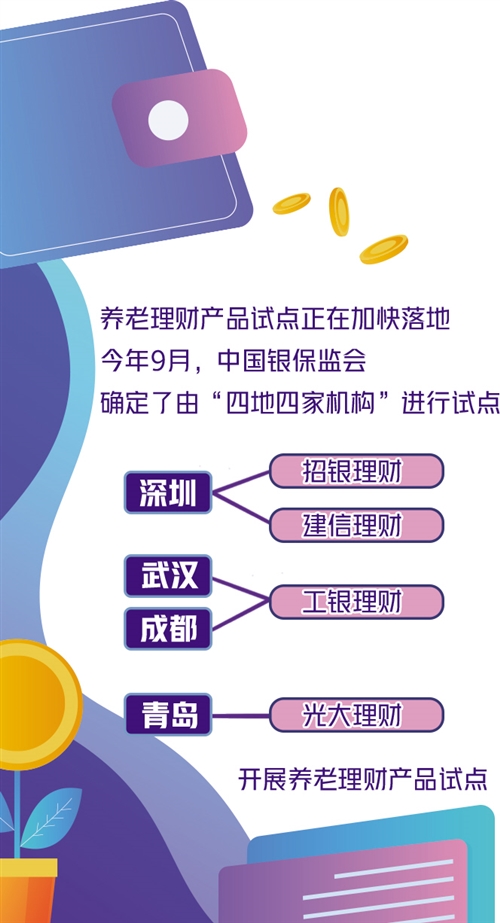 養(yǎng)老理財產(chǎn)品試點正在加快落地。今年9月,中國銀保監(jiān)會確定了由“四地四家機構(gòu)”進行試點,即工銀理財在武漢和成都、建信理財和招銀理財在深圳、光大理財在青島開展養(yǎng)老理財產(chǎn)品試點。10月下旬,銀保監(jiān)會首席檢查官、辦公廳主任、新聞發(fā)言人王朝弟在國新辦發(fā)布會上透露,養(yǎng)老理財試點產(chǎn)品已進入報備階段,很快就會跟廣大消費者見面。