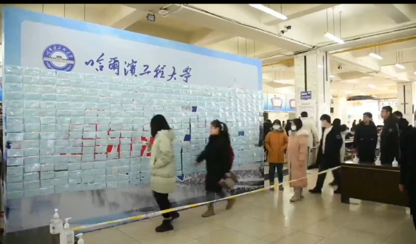 雖然疫情期間,學校處于封閉狀態(tài),但是哈工程的師生們用自己的方式為抗疫助力。在哈工程飲食中心的展板上以“程心程毅,抗疫有我”為主題,舉辦了一場千人取口罩的活動,學生們有序地保持間距,當口罩全部取下的時候,“哈爾濱加油”幾個字慢慢呈現(xiàn),口罩的背面還有飲食中心準備的小驚喜,提供各種兌換券,現(xiàn)場的師生被展板上暖心鼓勵的話語和獨特的方式所感動。