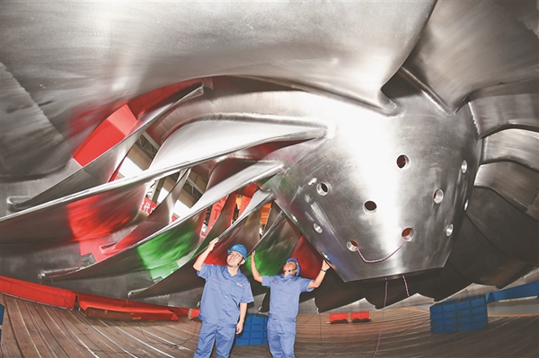 哈電集團研制的世界首臺長短葉片1000MW白鶴灘精品轉(zhuǎn)輪。圖片由受訪單位提供