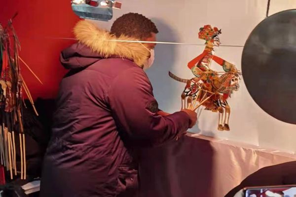 在望奎民間藝人表演的皮影戲現(xiàn)場,留學(xué)生們紛紛舉起手機拍照留念,并發(fā)出了陣陣贊嘆?!捌び笆怯皿H皮制作上色的,大家猜猜它是男生還是女生?”對外漢語系教師張明明帶領(lǐng)留學(xué)生來到皮影戲的后臺,講解皮影的制作工藝和皮影劇的來歷。留學(xué)生們被皮影戲深深吸引,聽得津津有味,并親自操作體驗了一下。
