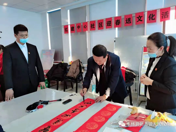 據了解,志愿服務活動旨在深入學習和貫徹黨的十九屆六中全會精神、市委十三次黨代會和縣委全會精神,歌頌和贊美我們偉大的黨100年來所取得的輝煌成就,以及在豐林縣委新一屆領導班子率領下,帶領全縣人民高舉習近平新時代中國特色社會主義思想偉大旗幟,“奮斗新時代·開創(chuàng)新豐林”美好愿景。此次活動,書寫春聯和福字有200幅,為社區(qū)廣大居民群眾送去新春的美好祝福,社區(qū)志愿者們把寫好的春聯送到轄區(qū)老黨員、居民家中,也把熱愛生活、奮發(fā)向上的“精氣神”送進了千家萬戶。