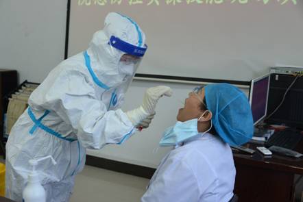 本次演練將歷時(shí)1周,院領(lǐng)導(dǎo)班子成員組成考核組,對(duì)各科室醫(yī)務(wù)人員逐一考核。演練共包括七步洗手法步驟、穿脫防護(hù)服流程、氯制劑消殺配制方法、核酸標(biāo)本采集操作流程、“百日平安守護(hù)行動(dòng)”應(yīng)知應(yīng)會(huì)五個(gè)環(huán)節(jié)。演練現(xiàn)場,考核組觀摩每名醫(yī)務(wù)人員實(shí)操全過程,現(xiàn)場提問應(yīng)知應(yīng)會(huì)、院感防控知識(shí),并進(jìn)行點(diǎn)評(píng)、糾正,提高醫(yī)務(wù)人員實(shí)際操作能力,熟練掌握院感防控知識(shí)要點(diǎn)。