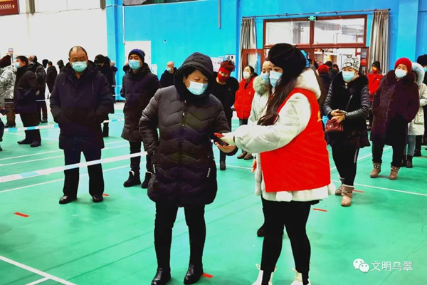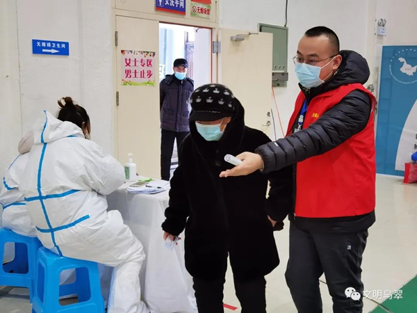 “身份證忘帶了能檢測上嗎?在哪看結(jié)果???”面對群眾們的疑問,志愿者們都一一耐心詳細(xì)解答,為核酸采樣工作營造有序、良好的環(huán)境,提高了檢測效率,在嚴(yán)寒中縮短群眾排隊(duì)等候時(shí)間,獲得群眾的一致好評。