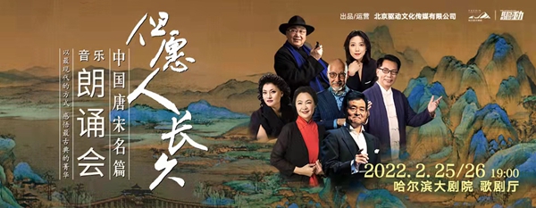 2月25、26日,“但愿人長久——中國唐宋名篇音樂朗誦會”將以全新陣容再度亮相冰城舞臺,由指揮家高嵩執(zhí)棒,黑龍江省歌舞劇院有限公司交響樂團(tuán)、民族樂團(tuán)、合唱團(tuán)共同呈現(xiàn),朗誦表演藝術(shù)家濮存昕、喬榛、張晶、張宏聯(lián)袂著名歌唱家楊小勇、么紅,以詩樂相伴的方式再現(xiàn)盛唐兩宋的詩詞歌賦。