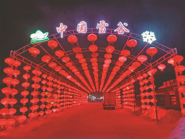 雪谷中心街道上,聳立著由上千只大紅燈籠排列組合的拱形門。