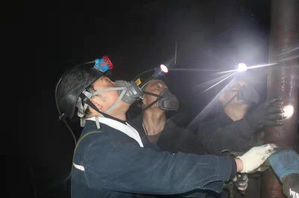 李鳳明領著當班職工組織停工檢查 (圖片由龍煤雙鴨山公司提供)