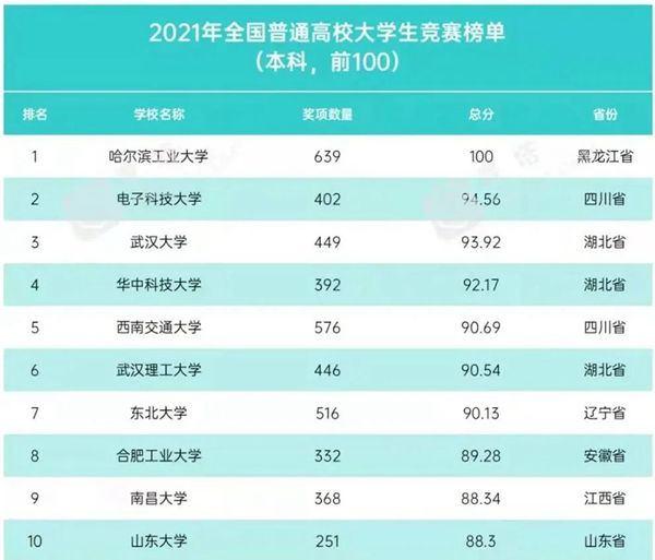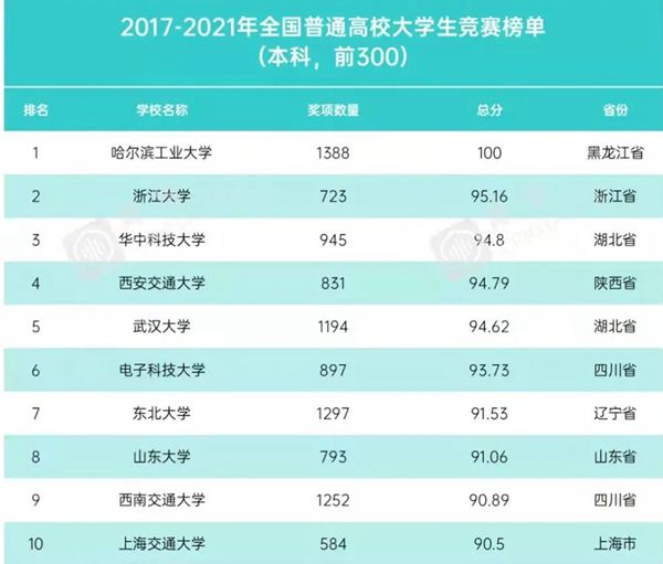 黑龍江經(jīng)濟(jì)網(wǎng)訊(黑龍江日報(bào)全媒體見習(xí)記者董廣碩 商祺)近日,中國高等教育學(xué)會高校競賽評估與管理體系研究工作組發(fā)布2021全國普通高校大學(xué)生競賽分析報(bào)告,全國共有1197所本科院校進(jìn)入2017—2021年本科榜單。哈爾濱工業(yè)大學(xué)以獲獎數(shù)量1388項(xiàng)、總分100分獲得2017—2021年全國普通高校大學(xué)生競賽榜單榜首,以獲獎數(shù)量639項(xiàng)、總分100分獲得2021年全國普通高校大學(xué)生競賽榜單榜首。這是哈爾濱工業(yè)大學(xué)連續(xù)3次獲得上述榜單冠軍。