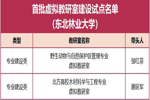 黑龍江經(jīng)濟(jì)網(wǎng)訊(黑龍江日報(bào)全媒體見習(xí)記者董廣碩 商祺)近日,教育部公布了首批虛擬教研室建設(shè)試點(diǎn)名單,東北林業(yè)大學(xué)野生動(dòng)物與自然保護(hù)區(qū)管理專業(yè)虛擬教研室、北方高校木材科學(xué)與工程專業(yè)虛擬教研室獲批首批虛擬教研室建設(shè)試點(diǎn)。