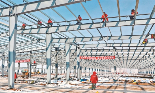 黑龍江日?qǐng)?bào)訊(陳丹華 王木超 黑龍江日?qǐng)?bào)全媒體記者孫昊)春節(jié)過(guò)后,依安經(jīng)濟(jì)開發(fā)區(qū)內(nèi)北緯47綠色有機(jī)食品產(chǎn)業(yè)項(xiàng)目就已復(fù)工建設(shè),全力開展鋼構(gòu)施工。
