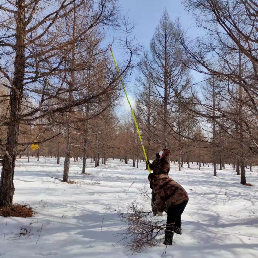 嚴(yán)格技術(shù)操作,科學(xué)采集枝條。按照《大興安嶺森林培育技術(shù)規(guī)范》中的“標(biāo)準(zhǔn)枝法”采集。生產(chǎn)人員深入到種子園優(yōu)良林分中,以興安落葉松林地域內(nèi)優(yōu)質(zhì)目標(biāo)樹為宜,分別對(duì)樹的陰陽(yáng)兩面和林相的南北面進(jìn)行采集枝條,按照樹的上、中、下和南北隨機(jī)抽取10—15株優(yōu)樹,每株各采兩組枝條,每株樹采集六個(gè)枝條,枝條長(zhǎng)度為1.5米以上,對(duì)采集枝條陽(yáng)上、陽(yáng)中、陽(yáng)下,陰上、陰中、陰下方位分別用標(biāo)簽標(biāo)記,進(jìn)行捆扎,并記錄好林班、小班、林齡和坐標(biāo)點(diǎn)。