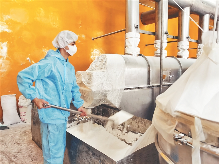 4月18日,新生村溫室大棚內(nèi),女村民們忙著往糖渣靈芝菌包里接靈芝菌。靈芝項(xiàng)目負(fù)責(zé)人肖劍說,木糖渣制備靈芝菌包,先配比混合均勻裝袋,菌包高溫滅菌后接菌、養(yǎng)菌。菌包移棚種植,靈芝出芽后進(jìn)行芝芽修剪,抽取靈芝噴粉,待一個靈芝種植周期過后,廢棄糖渣菌袋將被回收,粉碎做有機(jī)肥入田。