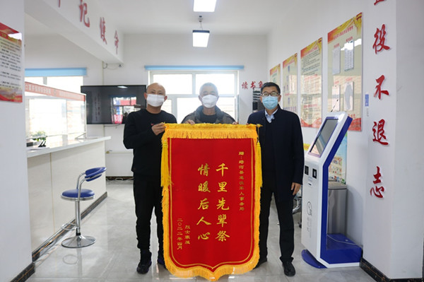 離開塔河前,老人拿著錦旗來到縣退役軍人服務(wù)中心。他表示,此行受到工作人員如家人般的接待十分暖心,對陵園的管理非常認(rèn)可和感謝。時(shí)隔55年,跨越3300多公里,安邦勤老人終圓夢。