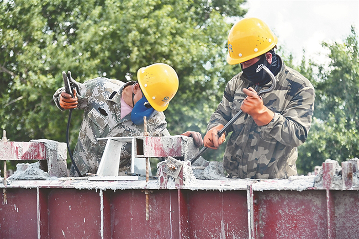 身處建設(shè)現(xiàn)場,記者聽到最美的聲音就是各種機(jī)器的嗡鳴。順著電鉆的嗡嗡聲,記者看向一棟3層建筑。劉明軍介紹,這棟建筑是身兼展示功能的辦公樓,正在進(jìn)行外幕墻裝飾。與之相鄰的二層建筑上,工人們正忙著進(jìn)行二次結(jié)構(gòu)砌筑。