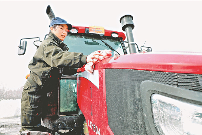 在不斷的實(shí)踐練習(xí)中,杜春燕不僅成長(zhǎng)為全能農(nóng)機(jī)手,還成為先進(jìn)農(nóng)機(jī)技術(shù)的推廣員,她把自己所掌握的技能搬到了田間課堂,隔三岔五地向農(nóng)場(chǎng)里的農(nóng)戶(hù)介紹新機(jī)械的工作原理。