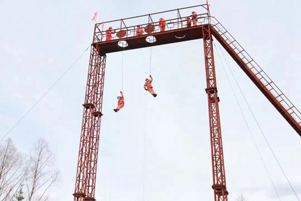 訓(xùn)練過程中,中隊(duì)長(zhǎng)馬振濤對(duì)高空索滑需要注意的事項(xiàng)和方法方式進(jìn)行了詳細(xì)講解,并將在訓(xùn)練過程中容易出現(xiàn)的錯(cuò)誤動(dòng)作,結(jié)合實(shí)際訓(xùn)練做了現(xiàn)場(chǎng)演示。指導(dǎo)參訓(xùn)人員克服恐懼心理,嚴(yán)格按照理論輔導(dǎo)、教學(xué)大綱、索滑降訓(xùn)練的步驟進(jìn)行科學(xué)訓(xùn)練。堅(jiān)持由簡(jiǎn)到繁、由易到難、循序漸進(jìn)的原則,對(duì)安全背帶穿戴、索控器具裝卸繩、不同高度滑降、遇到突發(fā)問題快速處理等內(nèi)容進(jìn)行了系統(tǒng)訓(xùn)練。一次次繩結(jié)、一次次索滑降、一次次健步如飛……千錘百煉中隊(duì)員們逐步熟練了滑降的操作流程,克服了恐懼心理,取得了明顯成效。