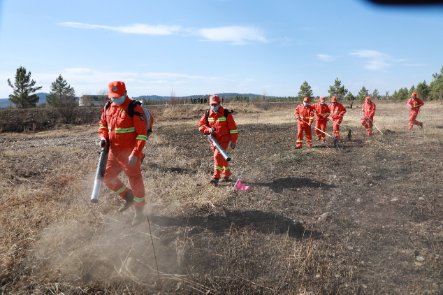 阿木爾林業(yè)局紅旗林場舉辦撲火技能競賽活動(dòng),防火專業(yè)隊(duì)隊(duì)員模擬實(shí)戰(zhàn)演練“一點(diǎn)兩面、分兵合圍”戰(zhàn)術(shù)(王力 攝)