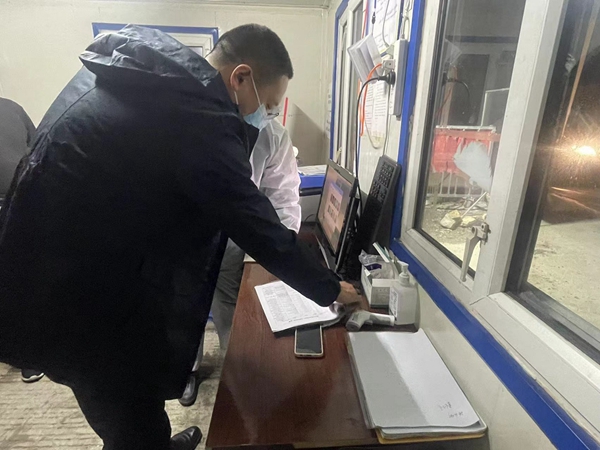 夜訪夜查工作組在公路卡口對入鎮(zhèn)人員信息、卡口消毒記錄、值班人員交接、值班人員是否在崗、是否飲酒等情況進(jìn)行突擊檢查。隨后,夜訪夜查工作組又來到消防隊值班室,現(xiàn)場隨機(jī)詢問了值班人員應(yīng)急處理程序,并對消防值班人員在崗和消防設(shè)施運(yùn)行等情況進(jìn)行檢查。