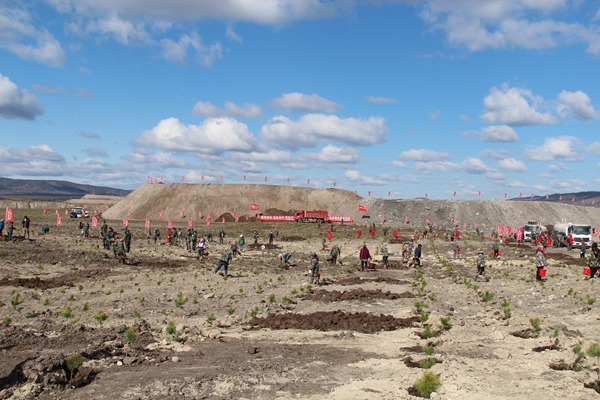 據(jù)了解,該礦2022年預(yù)計(jì)通過生態(tài)環(huán)境修復(fù)工程,完成633畝外排土場植樹復(fù)綠、增綠補(bǔ)綠目標(biāo),其中植樹面積499.35畝。截至目前,整個“義務(wù)植樹添新綠共建美麗新礦區(qū)”春季植樹復(fù)綠活動歷時35天,累計(jì)出動1500多人次,出動機(jī)械設(shè)備200臺次,新平整排土場216畝,完成歷史堆存外排土場表面草籽綠化949.5畝。植樹復(fù)綠面積259.5畝,栽種補(bǔ)植樟子松樹苗5.2萬棵,余下239.85畝的植樹綠化將在今年秋季全面完成。
