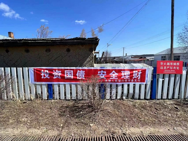 “簽訂協(xié)議+駐村宣傳”。人民銀行塔河縣支行選取離城鎮(zhèn)較遠(yuǎn)且人口居住相對(duì)集中的依西肯鄉(xiāng)作為此次“國(guó)債下鄉(xiāng)”宣傳點(diǎn)。通過(guò)與依西肯鄉(xiāng)人民政府簽訂“國(guó)債下鄉(xiāng)”戰(zhàn)略合作協(xié)議,充分發(fā)揮村委貼近民眾的優(yōu)勢(shì),聘任村委干部擔(dān)任國(guó)債宣傳員,做好“國(guó)債下鄉(xiāng)”的知識(shí)宣傳,建立國(guó)債宣傳長(zhǎng)效機(jī)制,確?!皣?guó)債下鄉(xiāng)”惠民便民村村通。