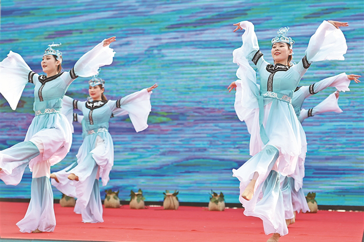 啟動(dòng)儀式后的赫哲族專場(chǎng)演出。黑龍江日?qǐng)?bào)全媒體記者 荊天旭攝