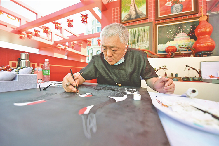 金漆鑲嵌制作技藝展區(qū),傳承人現(xiàn)場(chǎng)展示技藝。黑龍江日?qǐng)?bào)全媒體記者 荊天旭攝