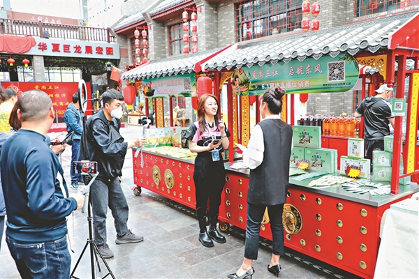 東興城商業(yè)步行街網(wǎng)絡(luò)直播促消費(fèi)活動。 宋洋攝