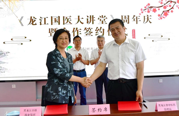 活動現(xiàn)場,黑龍江日報報業(yè)集團分別與黑龍江省中醫(yī)藥管理局、黑龍江省中醫(yī)藥科學院進行了合作簽約。省中醫(yī)藥管理局黨組書記、局長張曉峰說:黑龍江日報報業(yè)集團具有廣泛的社會影響力,我們將以框架協(xié)議的簽署為契機,在中醫(yī)藥文化知識宣傳普及、中醫(yī)藥產(chǎn)業(yè)宣傳推介方面進一步加深合作。省中醫(yī)藥科學院黨委書記、院長陳宏在現(xiàn)場說:《龍江國醫(yī)大講堂》已成為我省中醫(yī)藥文化宣傳戰(zhàn)線上的知名品牌,我們將在多領域開展更深層次、更高水平的合作,為我省中醫(yī)藥事業(yè)跨越式發(fā)展助推加力。