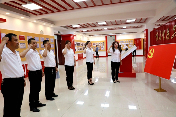 重溫誓詞,不忘來時路。管理服務服務中心黨支部組織在第二、第三季度入黨的四名同志,與其他黨員一起舉起右拳面向黨旗,飽含深情、鏗鏘有力地重溫入黨誓詞,并接受黨組織贈送的“政治生日”賀卡。