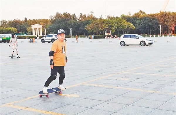 桀驁看起來(lái)40歲上下,但其實(shí)已經(jīng)47歲??醇軇?shì)他足夠嫻熟,但他告訴記者自己才滑了一個(gè)多月?!拔以韧媪藥啄陠伟寤⒍兑舫?磫伟寤┑囊曨l,今年初后臺(tái)總給我推送陸沖的內(nèi)容,看著看著喜歡上了,就買了板,和大家一起玩?!?/span>