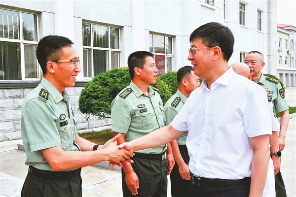 7月29日上午,在伊春軍分區(qū),隋洪波親切慰問了官兵代表,并與軍分區(qū)有關領導干部座談。隋洪波指出,多年來,駐伊部隊和廣大民兵積極參與全市疫情防控、搶險救災、維穩(wěn)處突、脫貧攻堅等工作,為守好祖國“北大門”和促進伊春改革發(fā)展穩(wěn)定作出了突出貢獻。希望駐伊部隊官兵深入貫徹習近平強軍思想,牢牢把握黨管武裝正確方向,堅持黨對軍隊的絕對領導,確保絕對忠誠、絕對純潔、絕對可靠,永遠做黨和人民的忠誠衛(wèi)士。希望駐伊部隊官兵一如既往地支持伊春經(jīng)濟社會發(fā)展,積極參與伊春建設,為加快伊春高質量轉型發(fā)展繼續(xù)貢獻力量,在推進伊春綠色崛起中發(fā)揮更大作用。