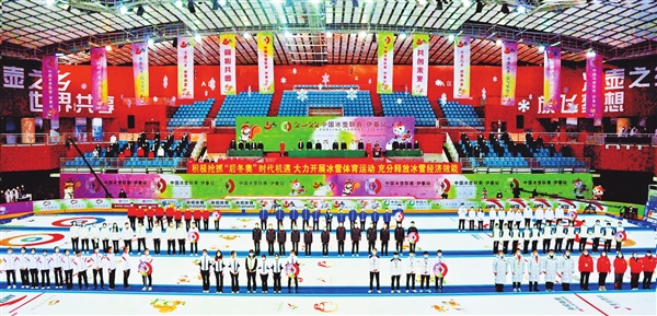 圖為2022中國冰壺聯賽(伊春站)開幕式現場。(胡錫韋/攝)