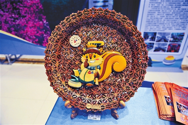 展覽現(xiàn)場,北沉香、核桃作品,賽事吉祥物掛件、木拼畫和版畫等,憑借其精湛的技藝、貼近生活和賽事的文創(chuàng)產(chǎn)品,吸引了眾多參觀者的眼球?!斑@次我們展示了具有小興安嶺特色的木藝品和冰壺、吉祥作品,通過直觀形象的展示,讓更多人了解林區(qū)元素的文創(chuàng)產(chǎn)品和技藝,宣傳和弘揚伊春的林區(qū)文化,讓我市的木制工藝品進一步發(fā)揚光大?!泵澜舅囉邢挢?zé)任公司總經(jīng)理王美江介紹說。