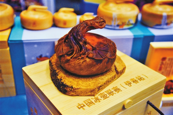 此次,美江木藝有限責(zé)任公司共展出了100余件產(chǎn)品,其中,最引人注目的瑞虎冰壺,由美江木藝公司為2022中國冰壺聯(lián)賽(伊春站)主題創(chuàng)作,最大直徑1.8米,總高度1.6米。主體壺身采用2022個小興安嶺山核桃做原料,壺蓋部分采用小興安嶺珍貴樹種紅松。作品構(gòu)思巧妙、用材獨特,既契合本次冰壺聯(lián)賽內(nèi)容,又充分體現(xiàn)了林都伊春、冰壺之鄉(xiāng)的地域特征。構(gòu)成壺身的2022個山核桃,寓意著2022年河山錦繡的小興安嶺,構(gòu)成壺蓋的興安紅松,蘊含著華夏文明“鴻運當(dāng)頭”的美好期許。此藝術(shù)品既體現(xiàn)伊春的森林文化藝術(shù)與競技體育相融合的發(fā)展理念,也展現(xiàn)了伊春的冰雪經(jīng)濟和木藝創(chuàng)意設(shè)計產(chǎn)業(yè)的發(fā)展成果。